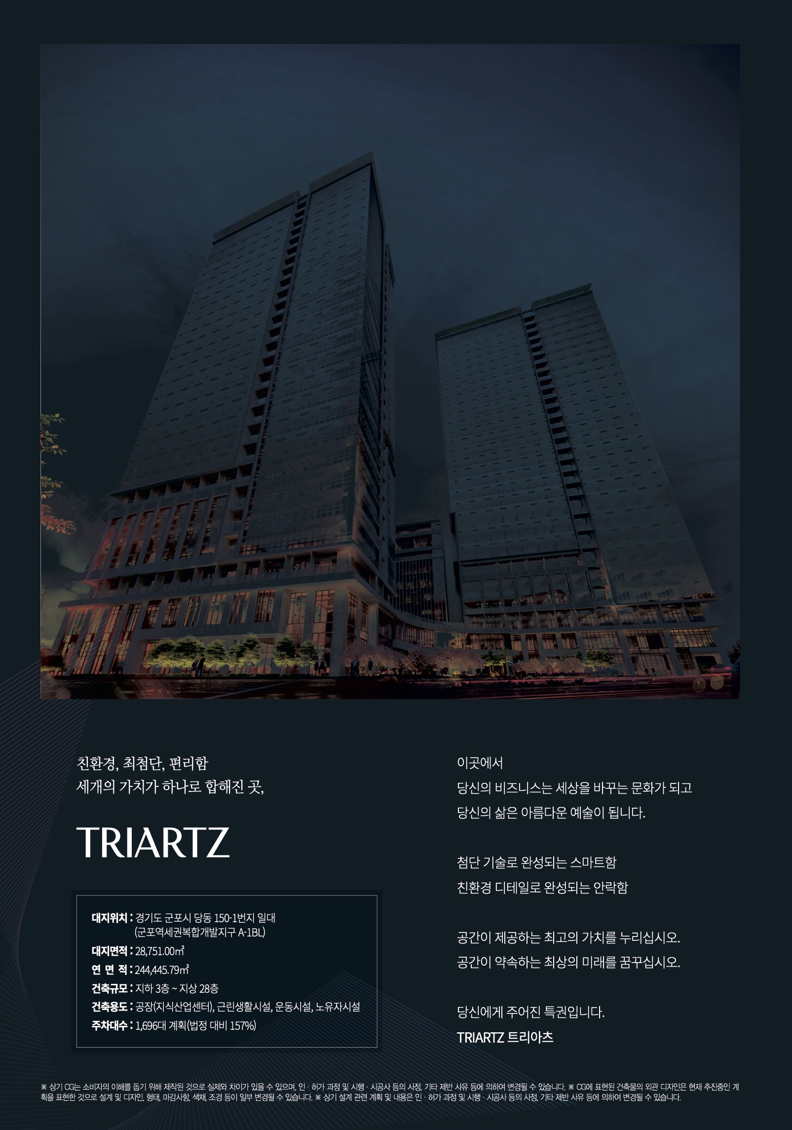 군포 초대형지식산업센터 트리아츠 군포 SK건설 + 태영건설 시공 군포역 트리아츠 지식산업센터 / 군포역 도보 약 1분거리 초역세권 지식산업센터 트리아츠 분양안내! 지식산업센터 하이루 2023. 10. 11. 15:10 제조형 / 사무실용 초역세권 지식산업센터 군포 트리아츠 홍보관 운영중! SK건설 + 태영건설 공동시공 지식산업센터 트리아츠 지식산업센터의 상세문의 자료가 필요하시다면 언제든 연락주십시요! - 군포 트리아츠 특 장점 - 군포역 트리아츠 지식산업센터 사업개요 군포역 지식산업센터 군포 트리아츠 층별 도면 군포 트리아츠 지식산업센터 홍보관 방문, 문의사항이 있으시다면 언제든 연락 주시면 감사드리겠습니다 공유하기 게시글 관리 APT-Factory 저작자표시 변경금지 (새창열림)